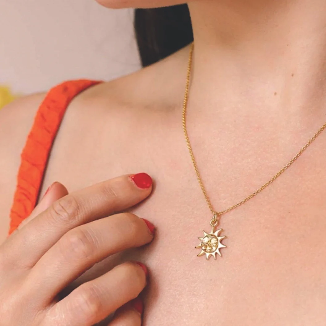The sun has long represented life, energy, and renewal, making this pendant a striking and meaningful addition to any jewellery collection.