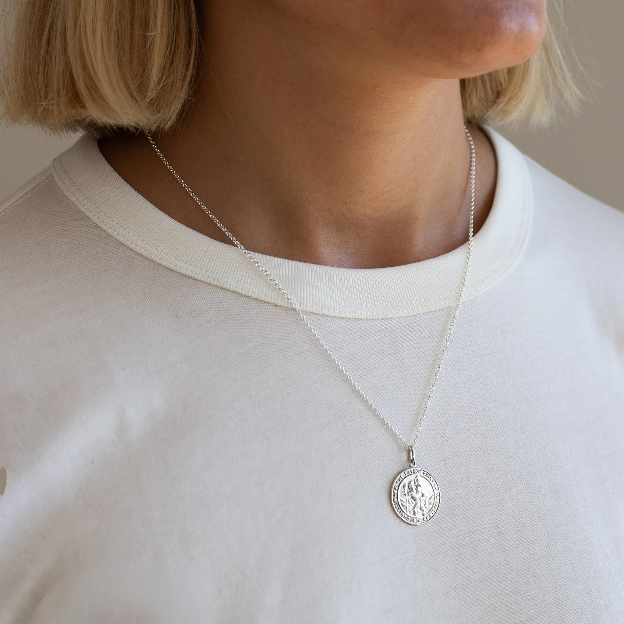 Solid sterling silver St. Christopher medallion, available with a choice of chain lengths.