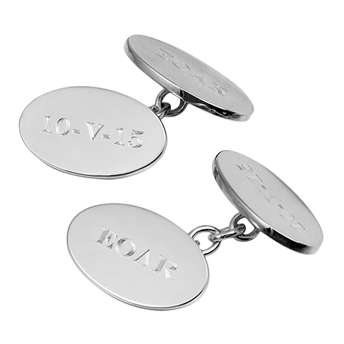 Super quality solid sterling silver cufflinks with polished oval fronts and traditional chain links.