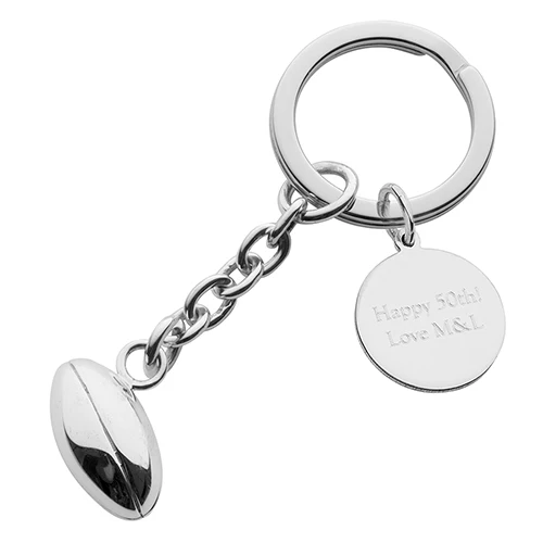 Hallmarked sterling silver rugby ball keyring, available with a stainless steel or sterling silver split ring.