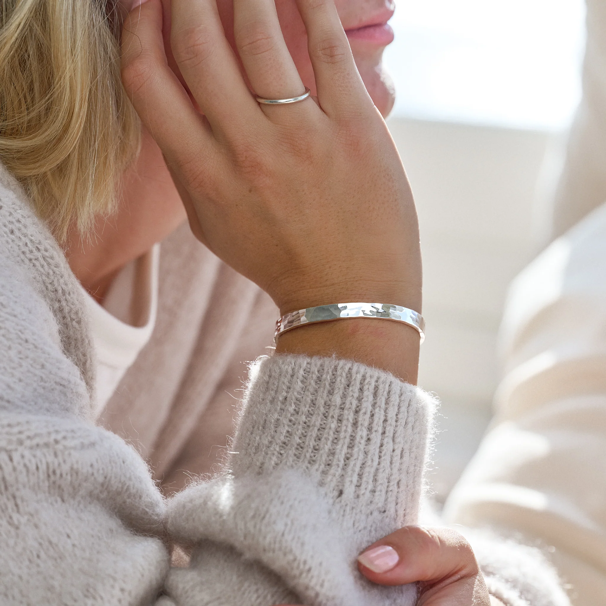 Open sterling silver bracelet handmade in our workshop, ideal for personal engraving. Available in a choice of font styles.