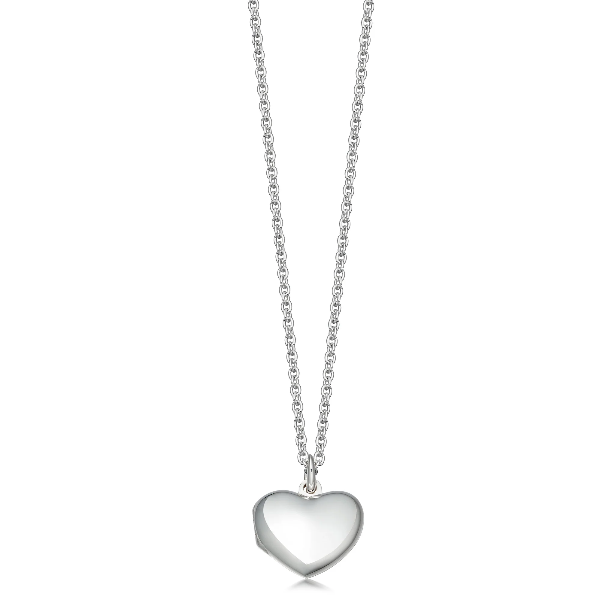 Heart-shaped locket in sterling silver, measuring 14mm wide and 12mm high, with a smooth polished finish.