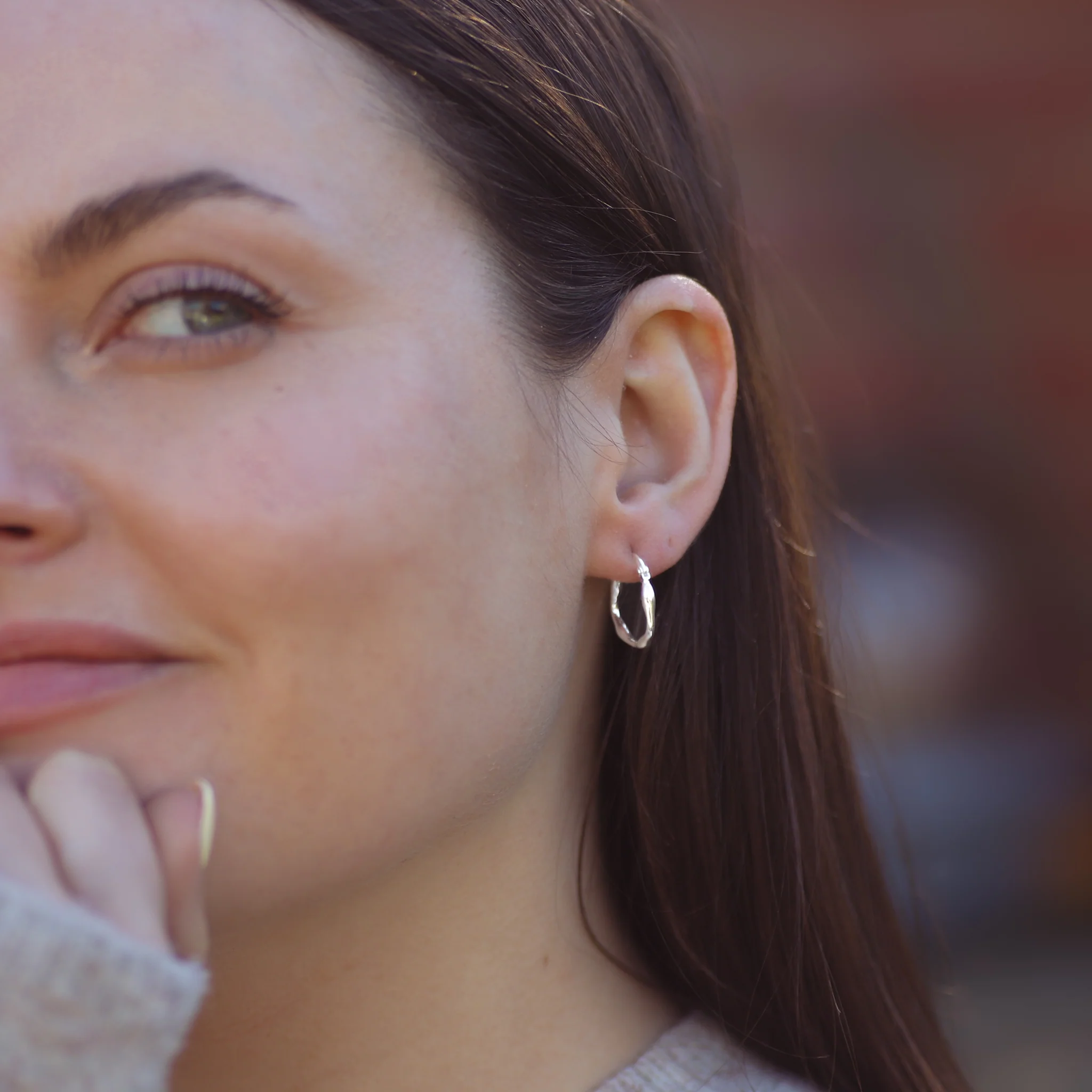 Sterling Silver Molten Hoop Earrings