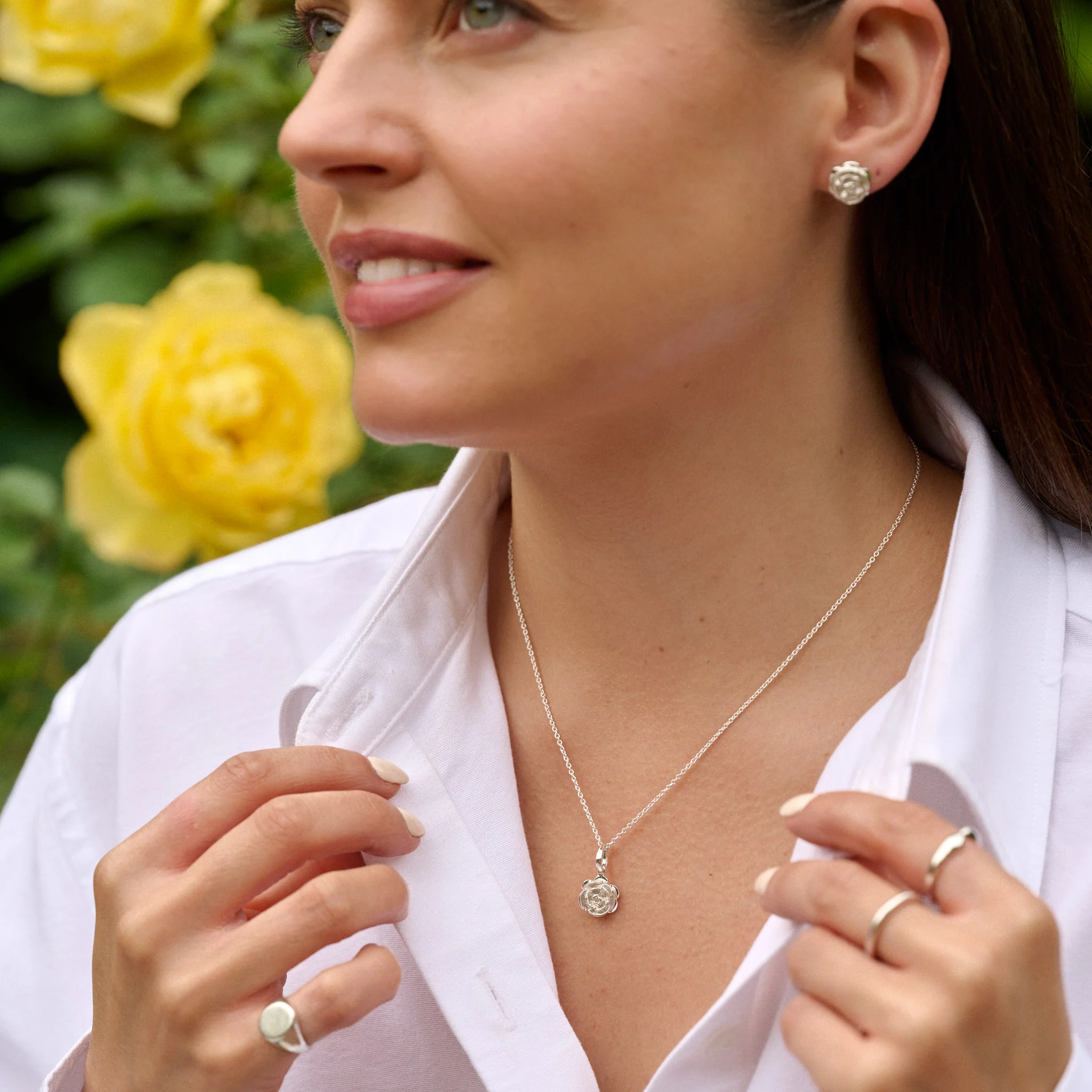 This solid silver rose pendant is a lasting symbol of elegance, crafted with intricate detail and hallmarked for quality. An ideal gift for birthdays, anniversaries, or special occasions.