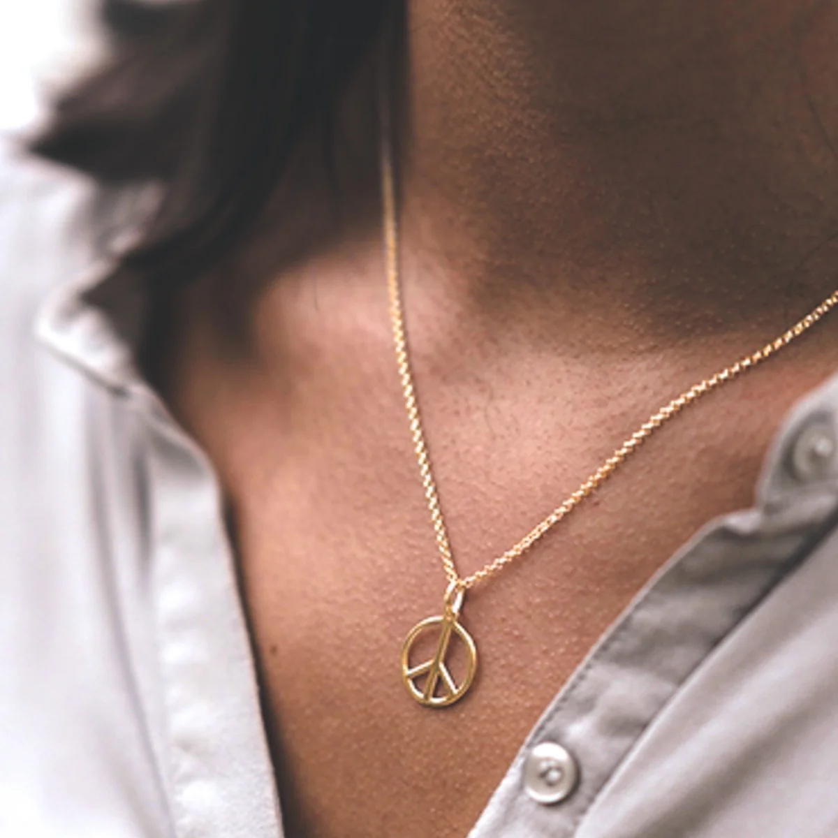 Yellow Gold Plate Peace Necklace